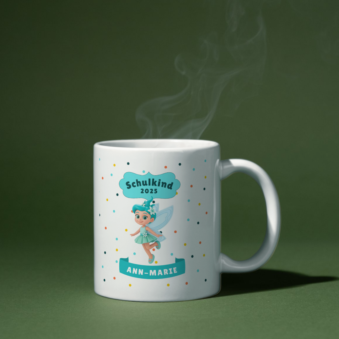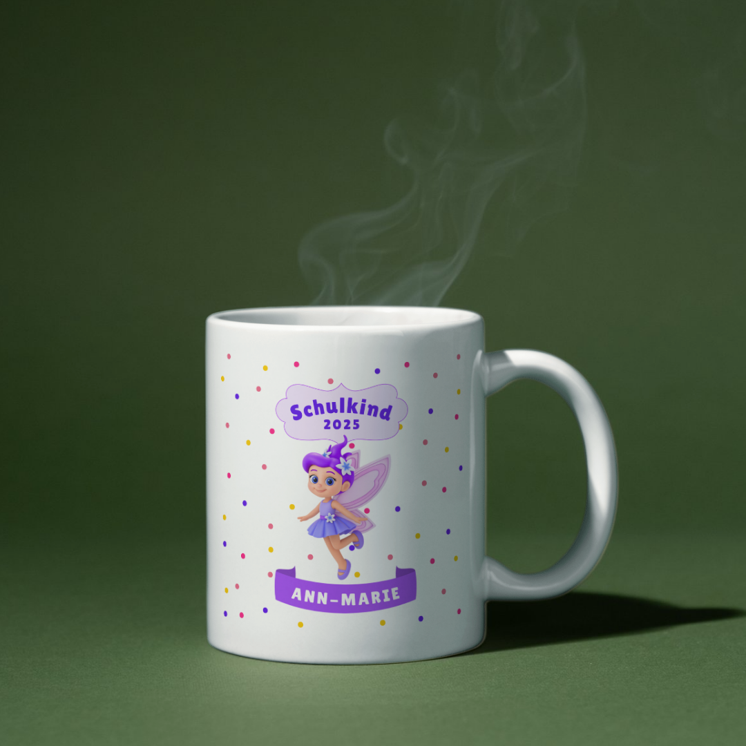 Starte mit Spaß und Farbe ins neue Schuljahr! Diese Schulkind 2025 Tasse im coolen Fee-Design ist ein echter Hingucker und perfekt für kleine Schulstarter.