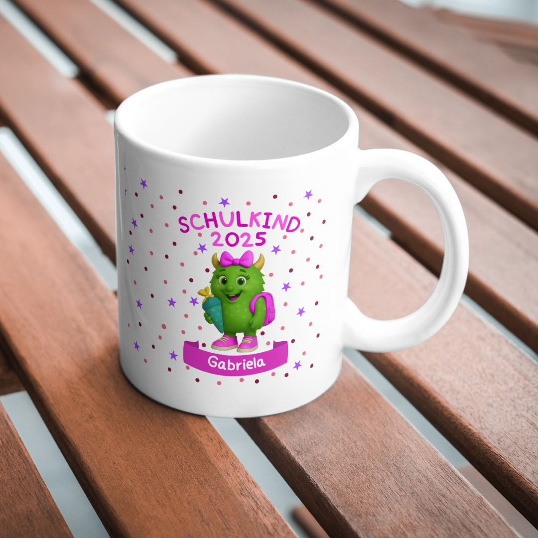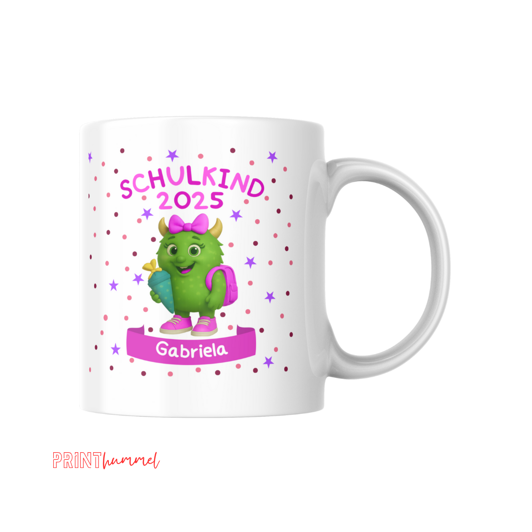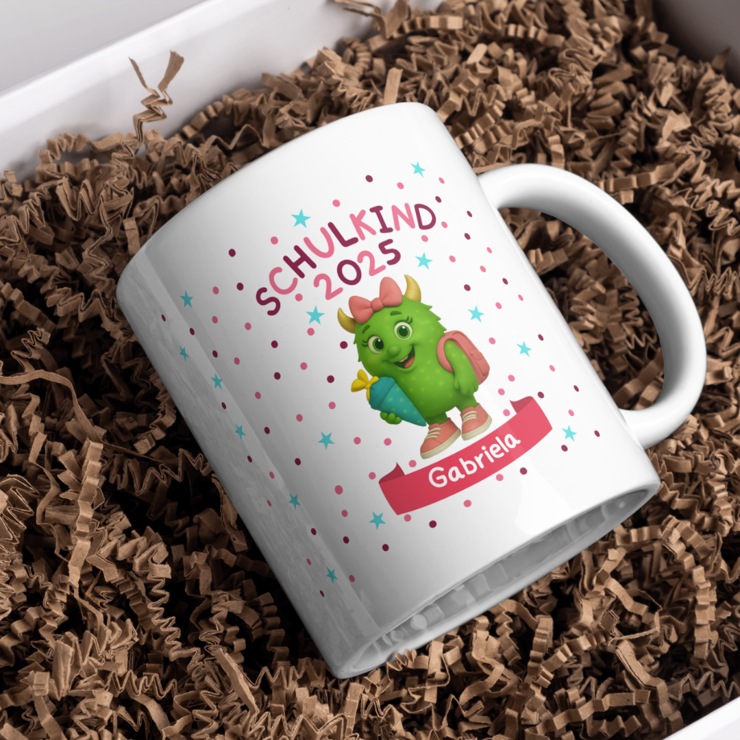 Diese Schulkind 2025 Tasse im coolen Monster-Design ist ein echter Hingucker und perfekt für kleine Schulstarter.