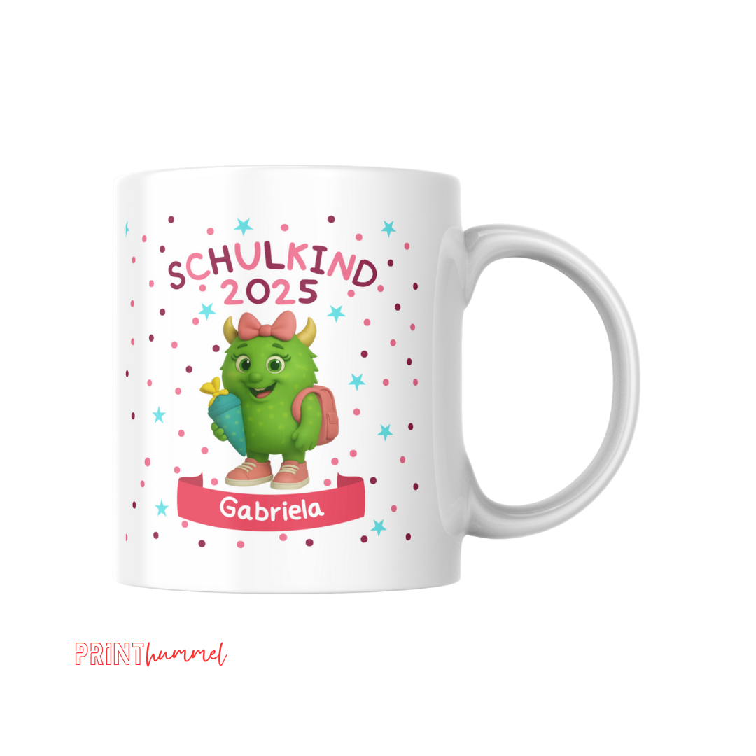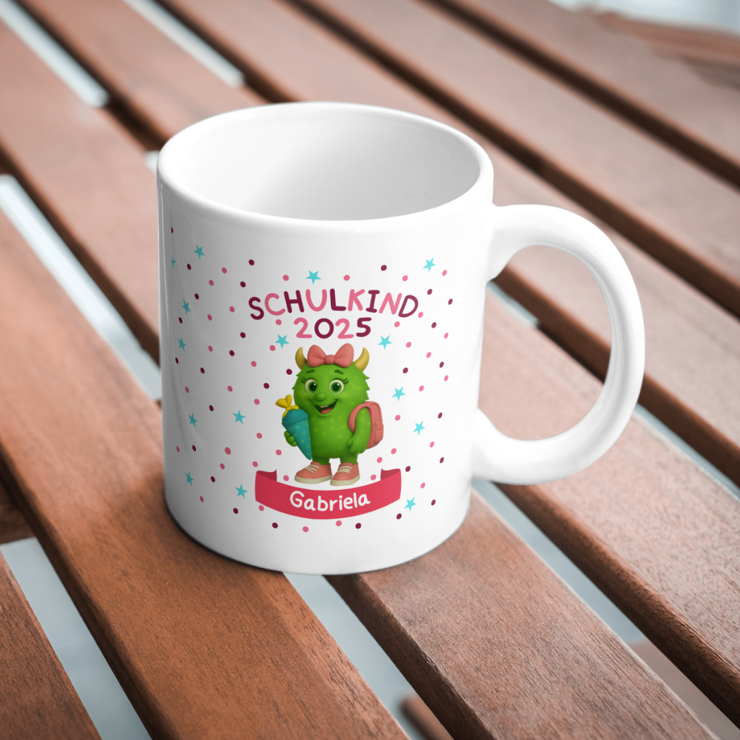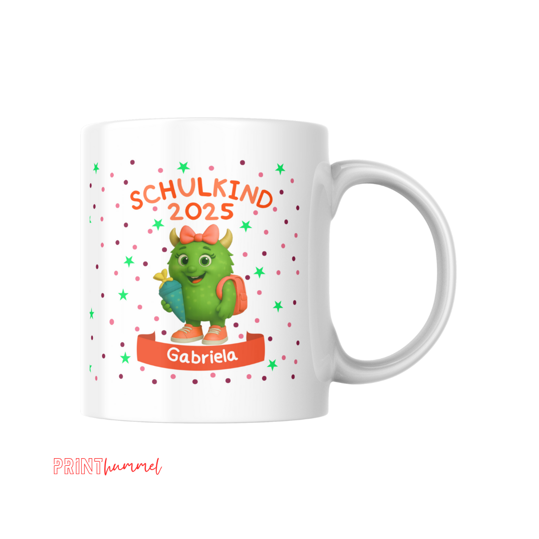 Diese Schulkind 2025 Tasse im coolen Monster-Design ist ein echter Hingucker und perfekt für kleine Schulstarter.