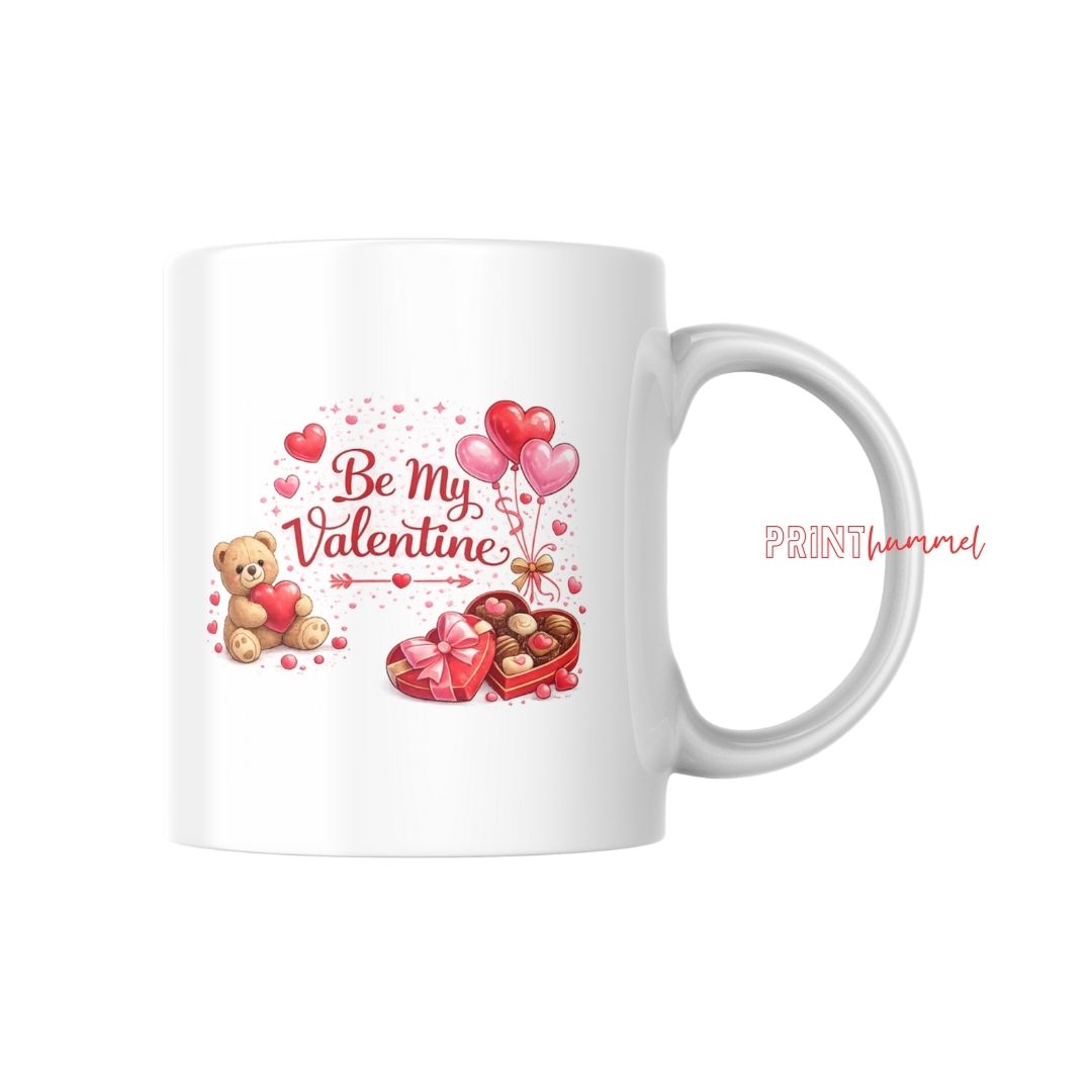 Be My Valentine Tasse Romantische Kaffeetasse mit Herz Teddy und Pralinen Perfektes Valentinstag Geschenk