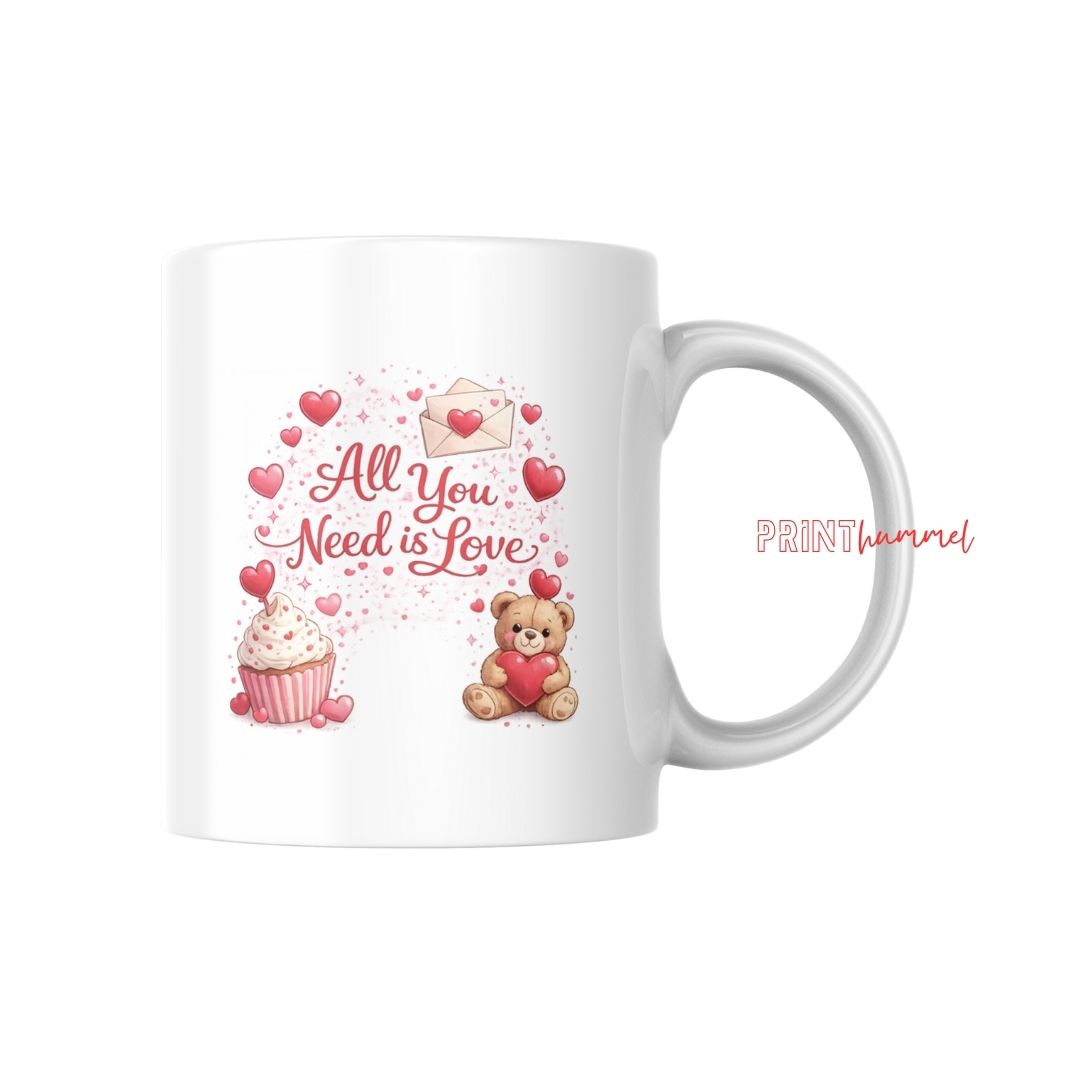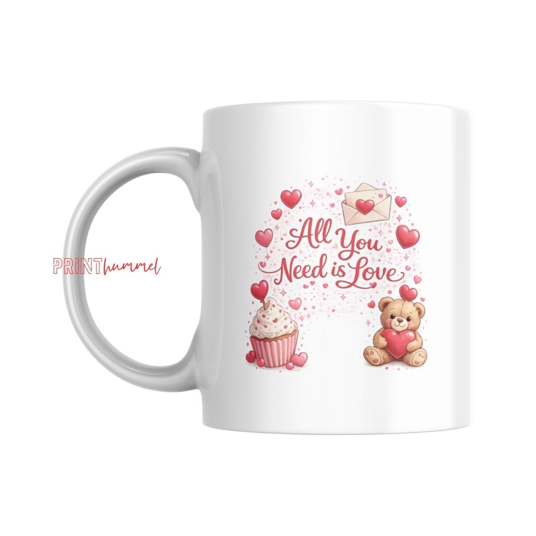 All You Need Is Love Tasse – Romantische Kaffeetasse mit Herz & Teddy | Perfektes Geschenk für Valentinstag, Hochzeit & Liebe