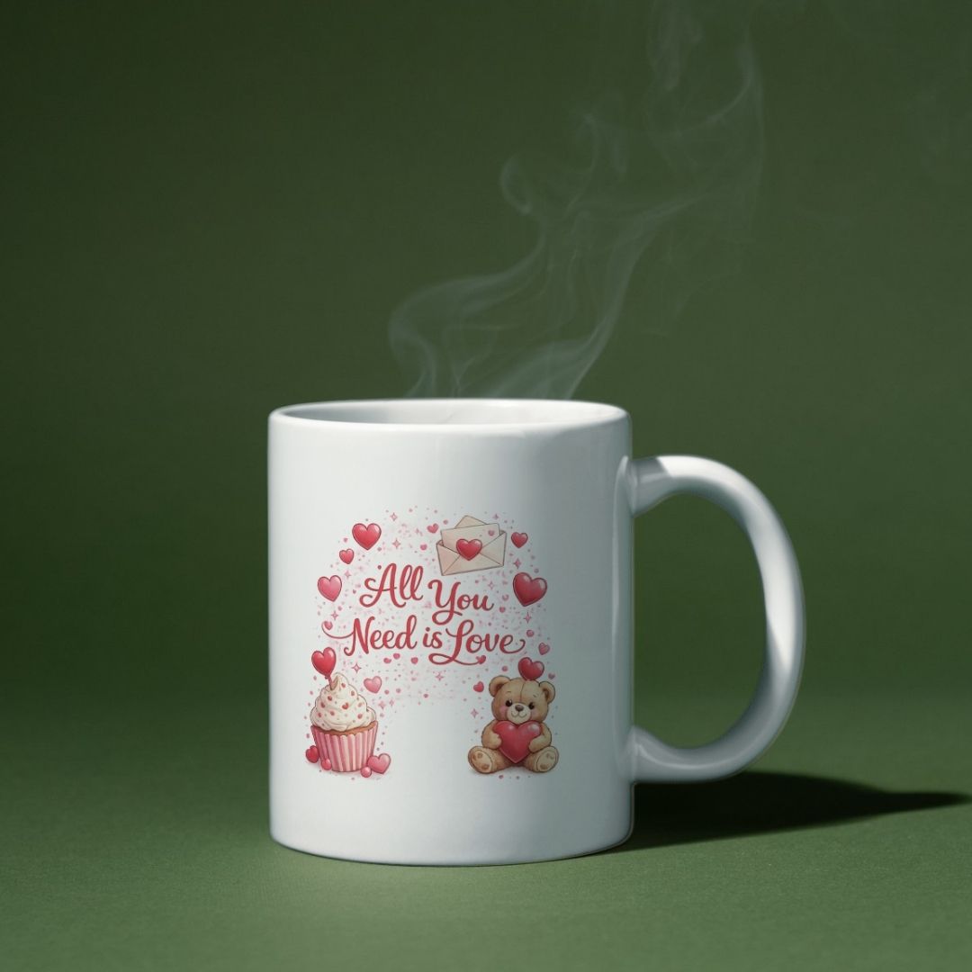 Diese liebevoll gestaltete „All You Need Is Love“ Tasse bringt jeden Morgen ein Lächeln ins Gesicht. Mit ihrem romantischen Design aus Herzen, einem süßen Teddy, Cupcake und Liebesbrief ist sie das perfekte Symbol für Zuneigung, Wärme und kleine Glücksmomente. Ob für Kaffee, Tee oder Kakao – diese hochwertige Keramiktasse begleitet dich durch entspannte Pausen und gemütliche Start-in-den-Tag-Rituale.