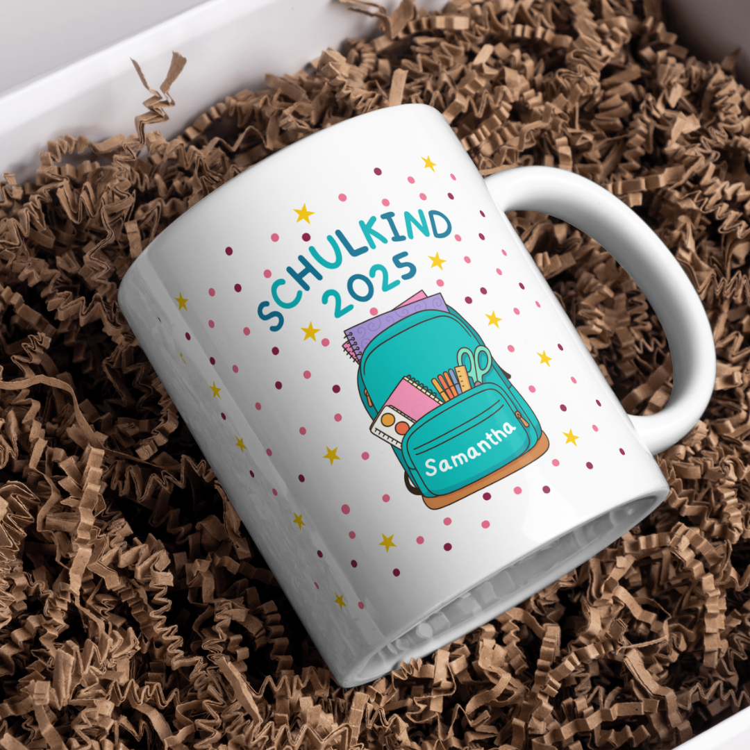 Überrasche dein Kind zum ersten Schultag mit einer liebevoll gestalteten Tasse im Ranzen-Design! Perfekt für den Start ins Schulleben und ein schönes Erinnerungsstück.